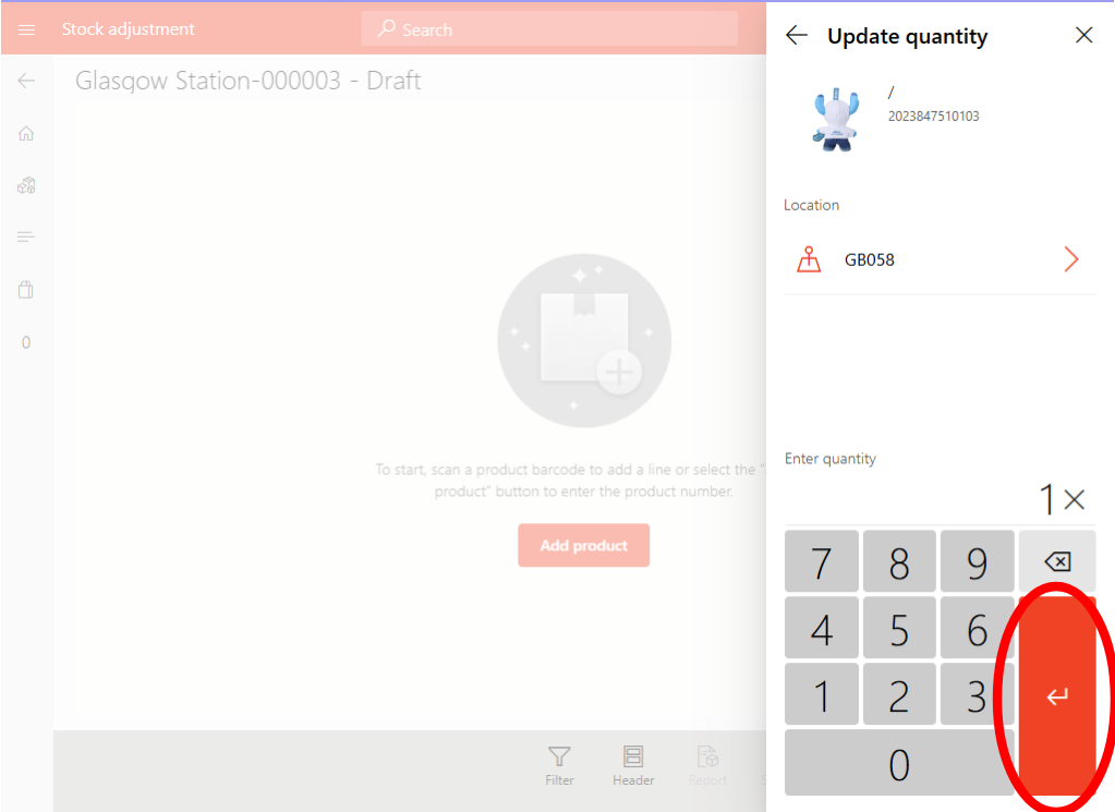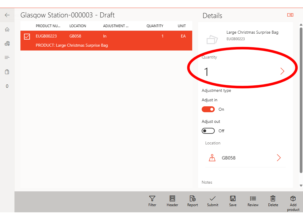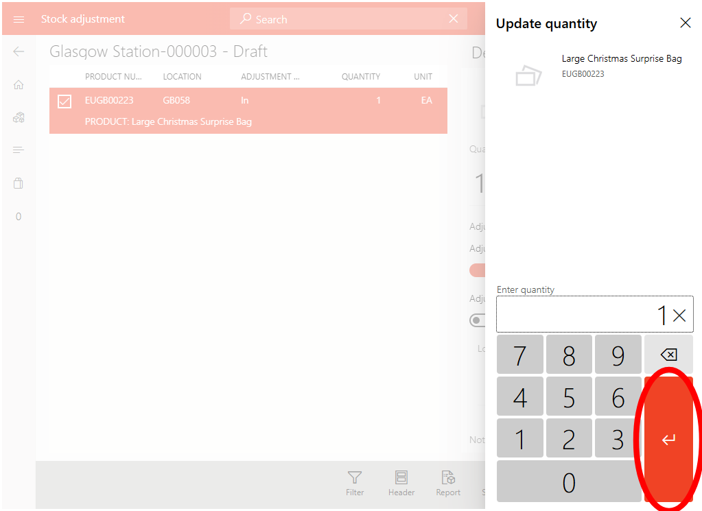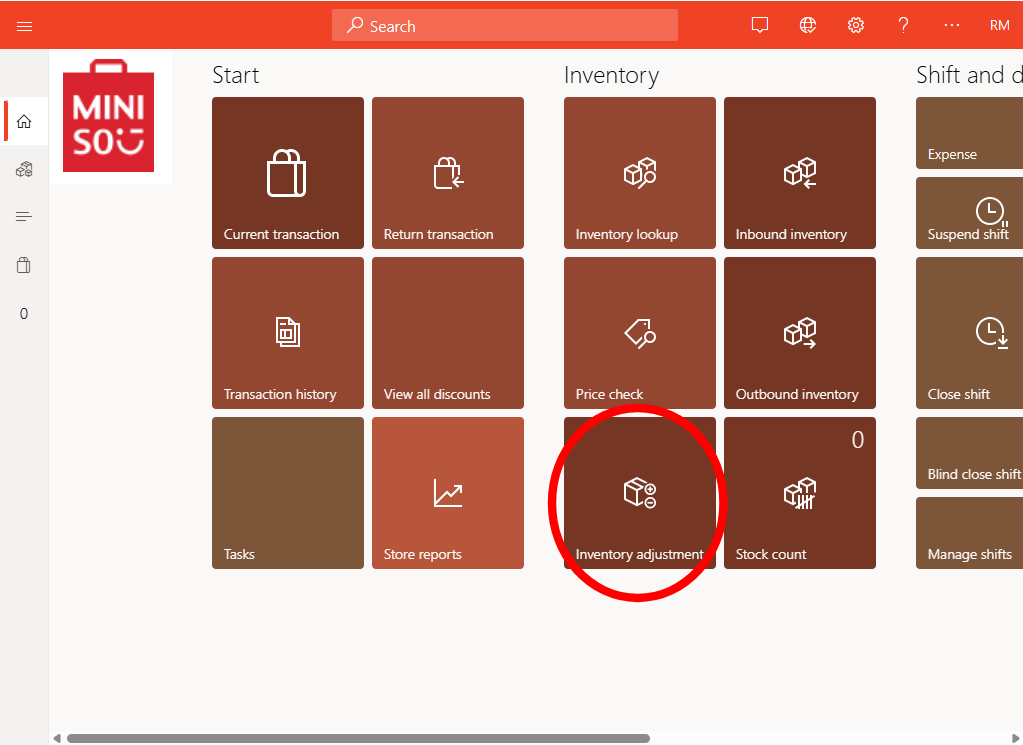 From the home screen select Inventory adjustments.