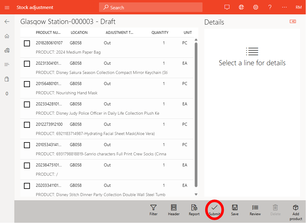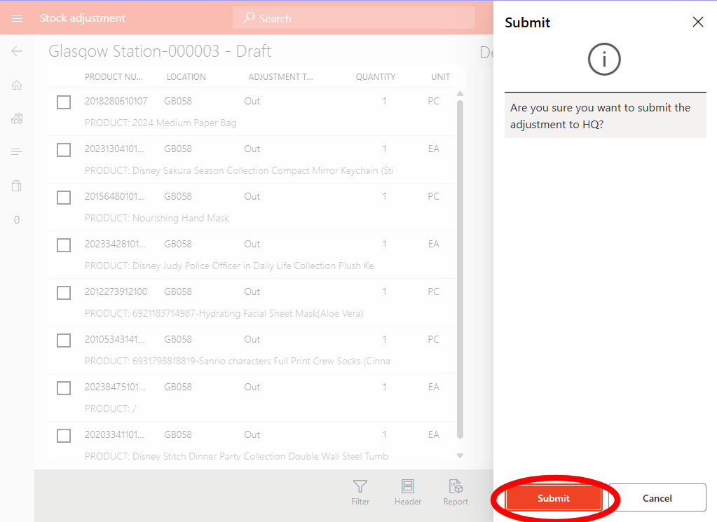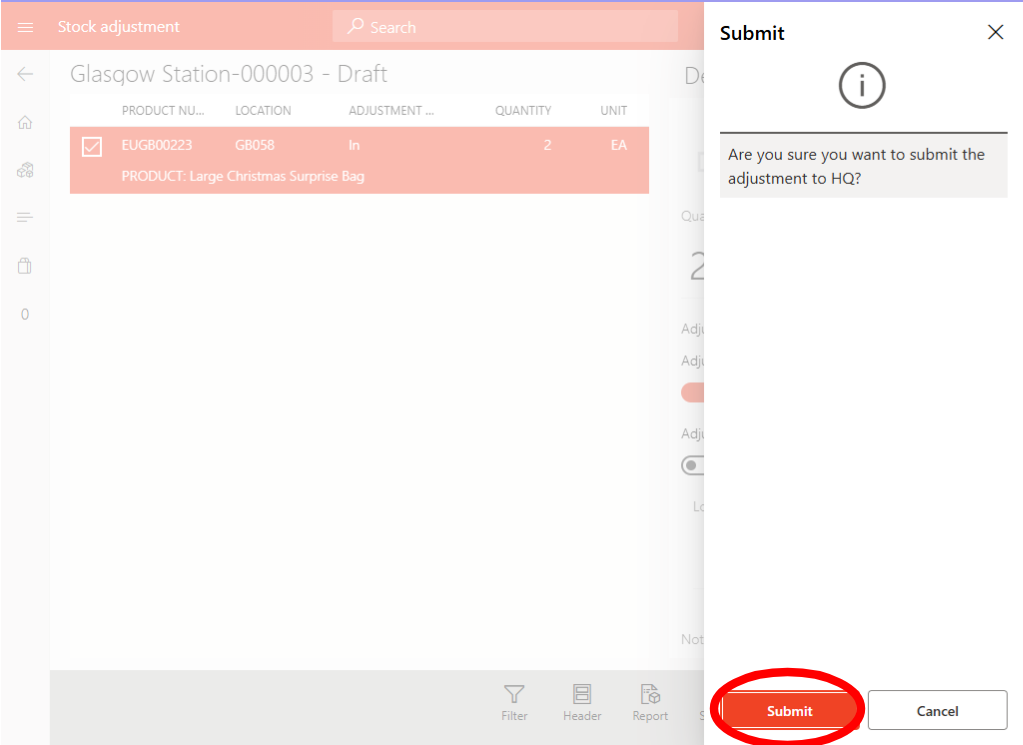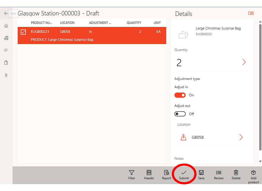 Once all products are added, tap Submit to finalise the journal. This removes items from regular stock and records them as used in surprise bags.