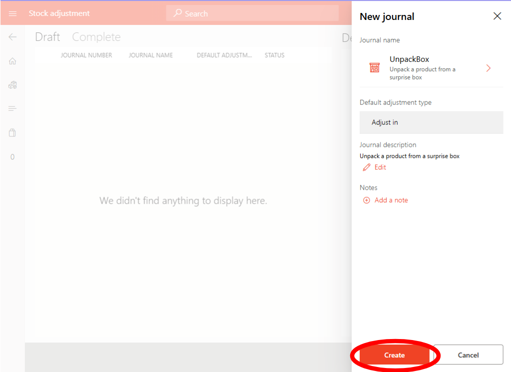 Go to inventory adjustments and create a new journal this time using UnpackBox